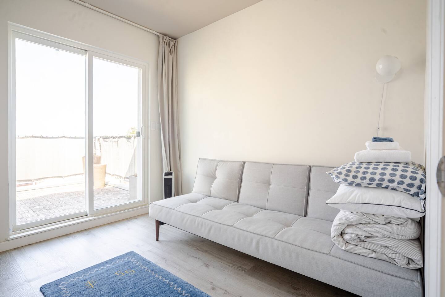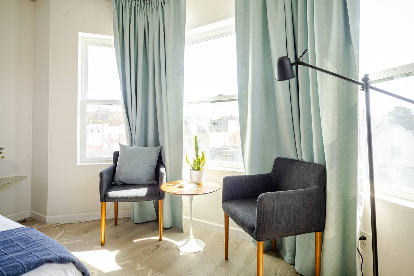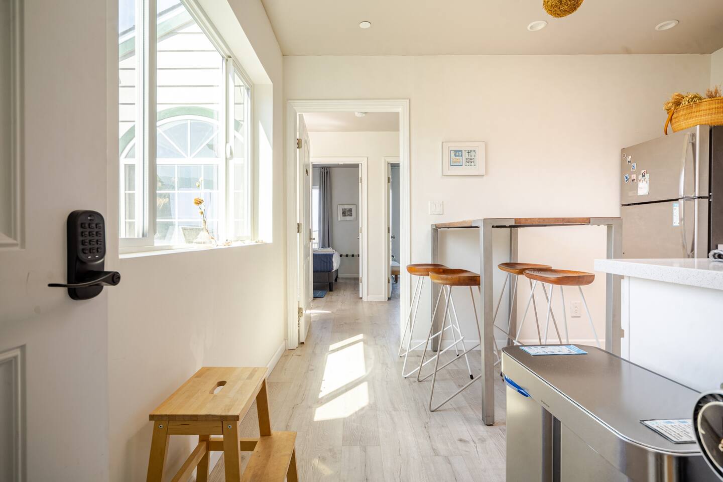 This unit includes the whole penthouse floor of our home, which is comprised of private access to two suites (each with its own bathroom), a living room, a patio, and a kitchen. Like with many San Francisco homes, our house is narrow and has 5 flights of stairs. However, with all of the stairs comes privacy and great views of the city for your trip! The Sun Room is a great place to relax after exploring the city, which is all easily accessible from our location.